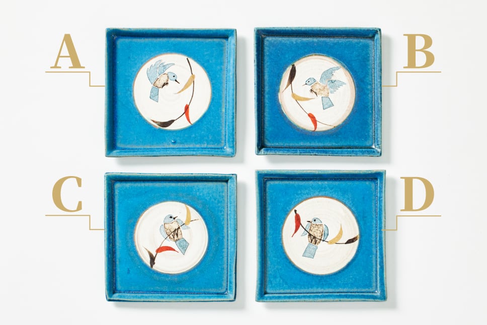 【康雲窯】武雄焼/青藍 青い鳥 絵付け 角皿 11cm