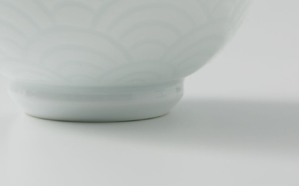 重要無形文化財「白磁」保持者(人間国宝)、井上萬二さんの作品。純白の白磁全体に青海波の文様が躍動的に彫り込まれた美しいぐい呑みです。井上萬二さんの作品特有の、丸みを帯びた高台は、優しく全体を引き締めます。ロクロ成形のため、口当たりは優しく、日本酒の味わいを深めることでしょう。フォルムは手によくなじむ洗練されたかたちで晩酌の友として手放せなくなる一品です。お酒の時間をぐっと優雅に引き立ててくれるでしょう。