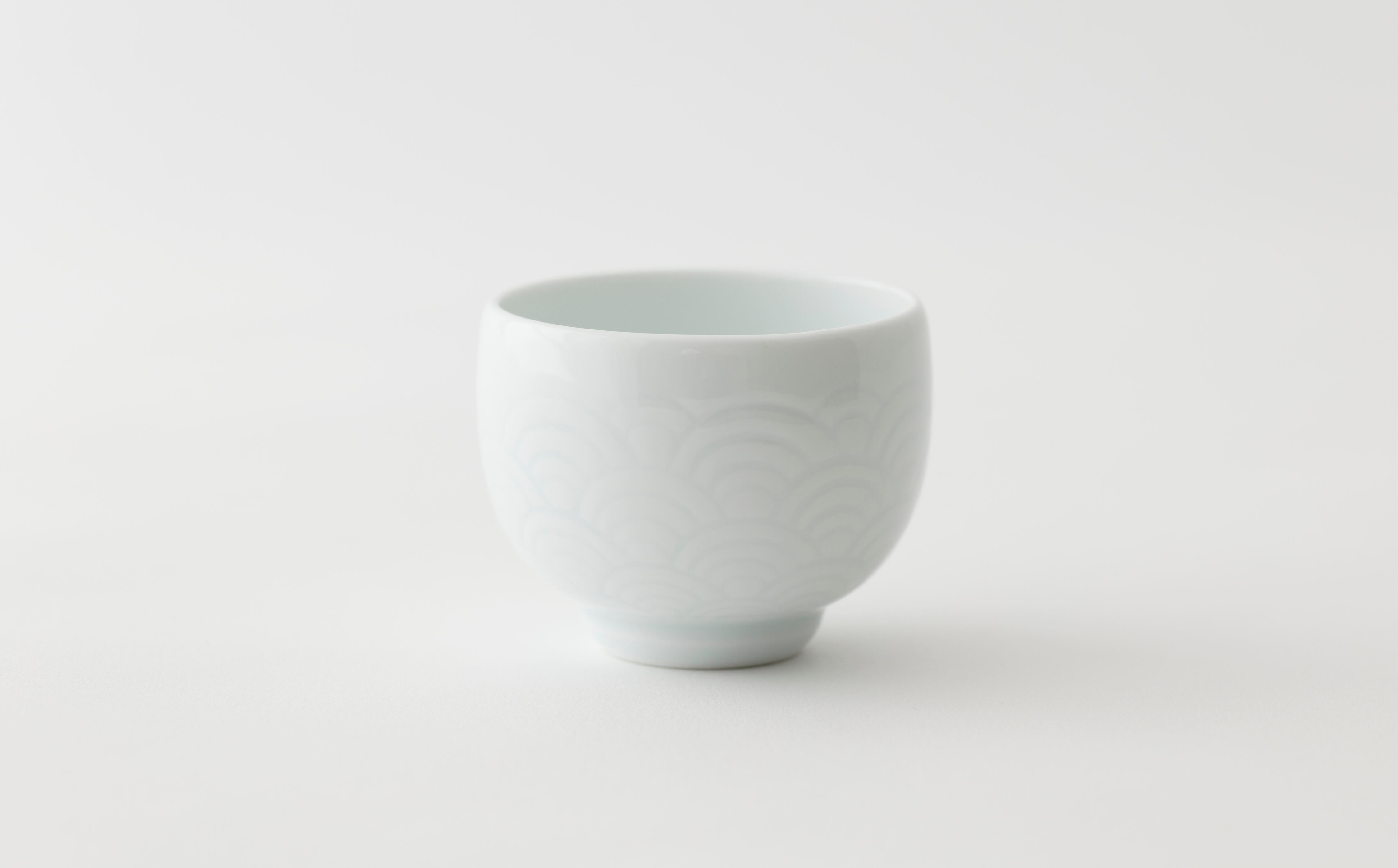 商品内容:【井上萬二】有田焼/白磁青海波 ぐい呑(小)