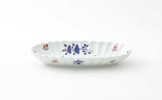 【瀬兵窯】伊万里焼/錦花唐草 楕円菊彫皿