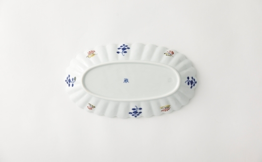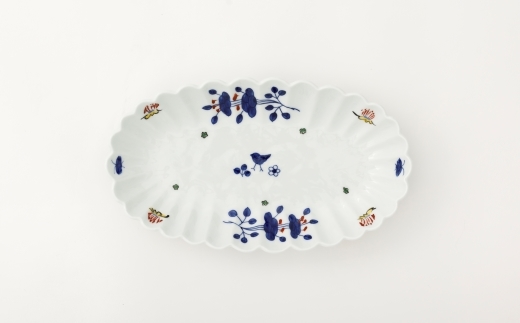 瀬兵窯のルーツは、江戸時代に将軍や大名への献上品を製作していた 鍋島藩の御用窯、鍋島藩窯にあります。「自然との調和」をコンセプトに掲げ、天然色素を使った絵付けにこだわっています。これは、瀬兵窯のロングセラー錦花唐草シリーズの楕円皿です。伊万里焼の伝統を継承しながらも、現代のライフスタイルに合うよう描かれた草花や小鳥の絵柄、菊の花びらをモチーフにした皿の形状がかわいらしいアイテムです。日常使いから来客用まで幅広くお使いください。