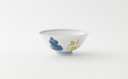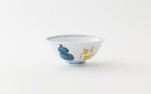 手書きで描かれた温かみのあるヒョウタンの絵がほっこりとした気持ちにさせてくれる徳七窯の対茶碗です。茶碗の側面に描かれているのは6つのヒョウタン。6つのヒョウタン絵は古来、六瓢「むびょう」と読まれ、無病息災の縁起物として親しまれてきました。ヒョウタンの中に描かれた、椿など様々な絵柄も鮮やかで目を楽しませてくれます。口縁が柔らかく反り返っているため、口当たりが優しくなめらかです。かわいらしい茶碗が毎日の食卓に温もりを与えてくれることでしょう。