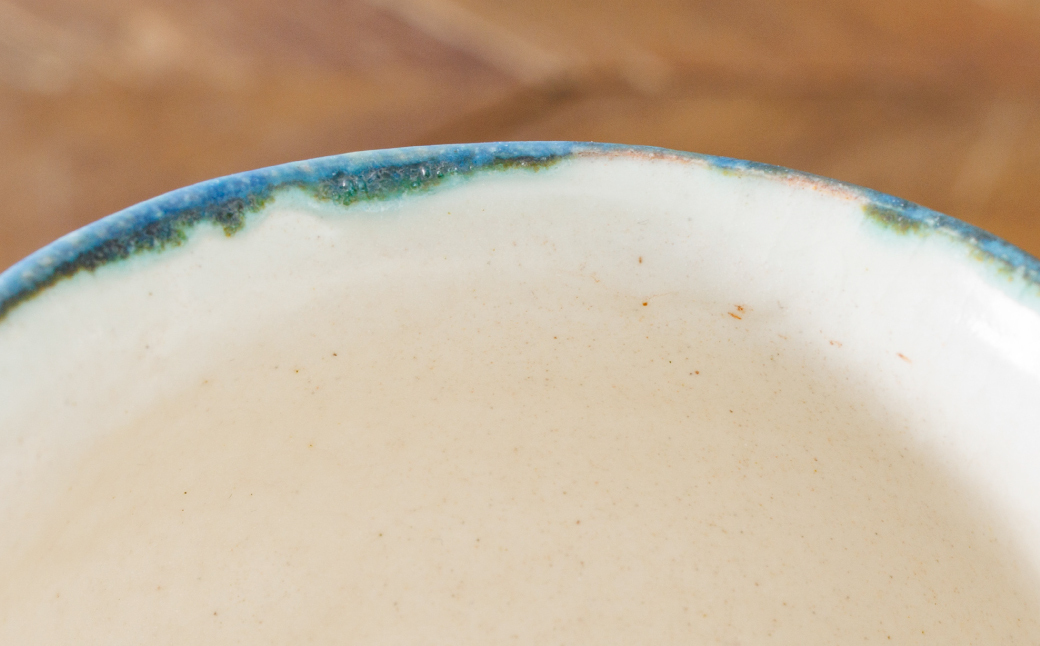 内側は粉引の柔和な白さがお茶の美しい緑を引き立たせます。
