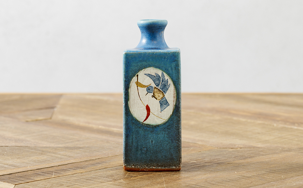 これは鮮やかな青が特徴的な花器です。草花とも相性の良い色で日常の様々なシーンに彩りを添えてくれます。そのまま置いておくだけでも存在感のあるアイテム。一つ一つ手づくりの味わいがあり、釉薬の青の濃淡が絵画のような重厚感を与えるアイテム。鮮やかな青色には、使う方の気持ちを明るくしたいという康雲窯の思いが込められています。愛らしい青い鳥も日々の生活を癒してくれます。和紙染めでひとつひとつ丁寧に描いています。手仕事の魅力がつまった花器。プレゼントにもおすすめです。