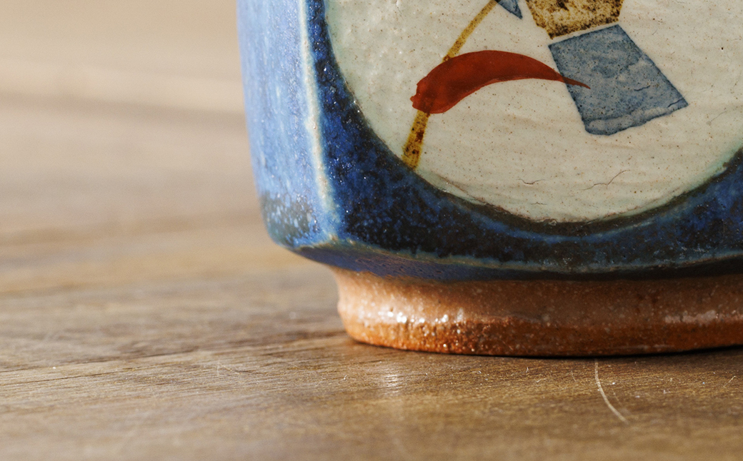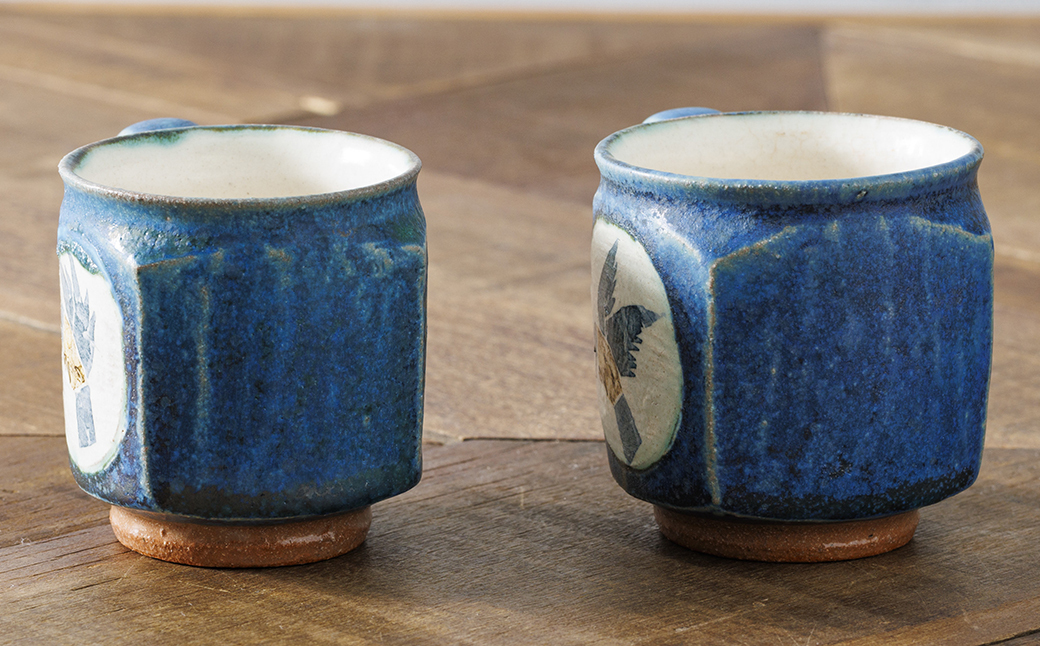 武雄市の康雲窯の山口さんと娘の華傳さんは、手仕事にこだわり、「自然と暮らしに寄り添う器」づくりを大切にされています。どの器にも自然を感じさせる魅力があふれています。武雄焼のルーツでもある「古唐津」の伝統的で素朴なうつわに、鮮やかな上絵・赤絵、和紙染めや呉須、掻き落としなどの技法を施すことが特徴。藍染の鮮やかな色を焼物でも表現したいと、工夫して生まれた「青の世界観」は康雲窯でも定番のアイテムです。