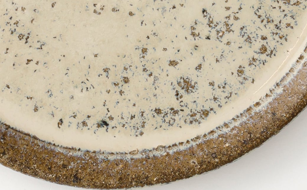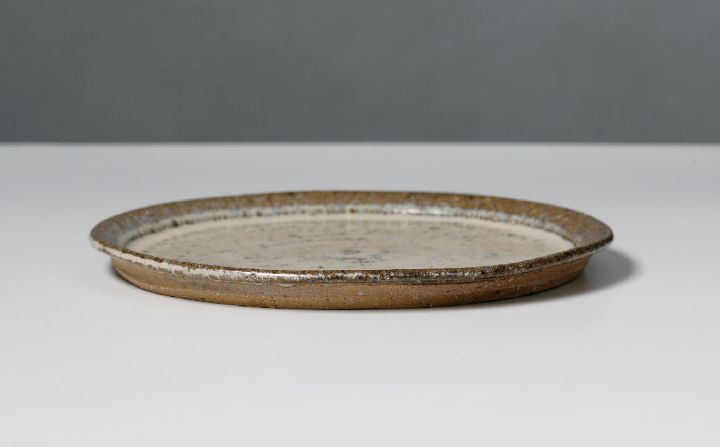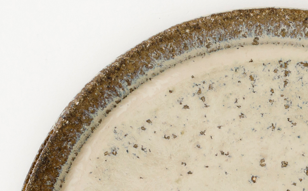 土の持つ魅力を引き出し、茶人しての遊び心を取り入れたオリジナリティあふれる作風で全国にファンを持つ藤ノ木土平さんが製作した斑唐津の皿です。乳白色の斑模様に見え隠れする黒い斑点は土に含まれる鉄分です。斑模様も斑点も一枚一枚異なり、表情豊かな一品となっています。和洋問わず日常使いにぴったりなサイズ感のプレートは、日々の食卓に活躍することでしょう。温かみのある土味が活きたプレートはギフトにもどうぞ。