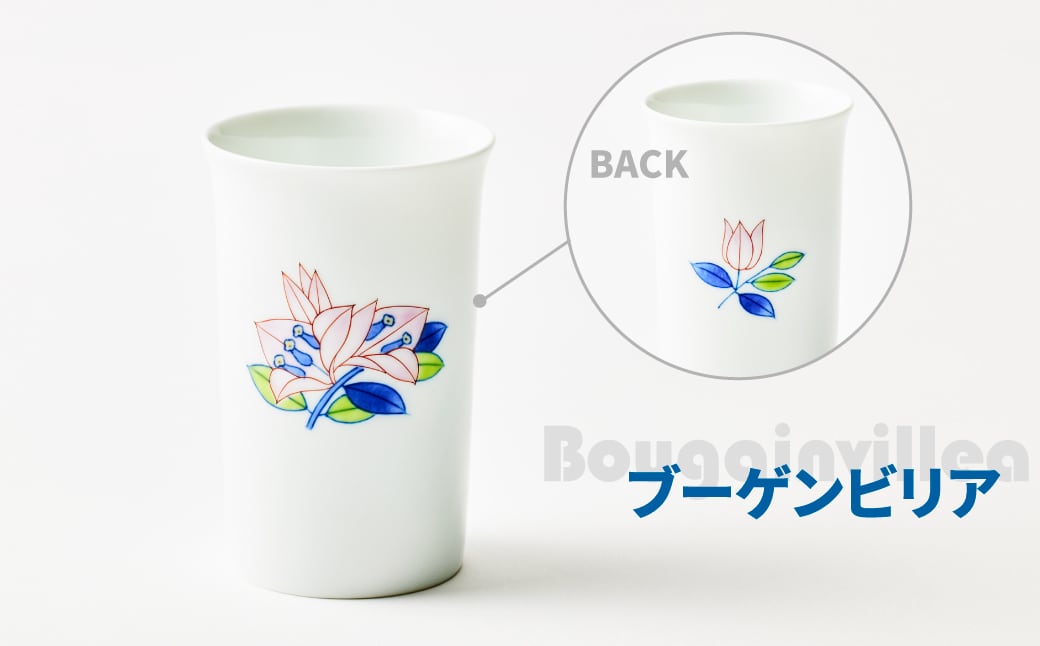 畑萬陶苑は、伊万里焼の伝統技術を継承し、「日本的美的感覚」を追求する窯元です。また、様々なブランドや企業と積極的なコラボレーションを展開し、伊万里焼の持つ可能性を広げています。少し口の広がった握りやすい細身のカップに、風にそよぐ草花の絵柄が、鍋島様式の精緻な筆致で描かれています。ジュースやアイスコーヒーなど氷を浮かべて、涼やかにお使いいただけます。伊万里焼ならではの色彩と気品を楽しめる、上品なカップです。