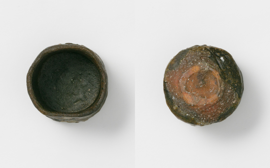 黒唐津とは、唐津焼を代表する技法のひとつで、鉄分を多く含んだ鉄釉を用いて焼かれたものです。鉄分の割合により褐色から漆黒まで様々な発色をします。この黒唐津ぐい呑みは、墨のように深い黒が特徴で、ロクロ成形ではなく唐津焼では珍しい刳貫(くりぬき)技法で時間をかけて丹念に製作されています。光の加減でこげ茶色や深緑に見え、表情豊かです。力強いフォルムや唐津の土感を感じさせる手馴染みが奥深い一品。使い込むうちに変化が楽しめるところも唐津焼の醍醐味。じっくりと器を育てる楽しみをご堪能ください。
