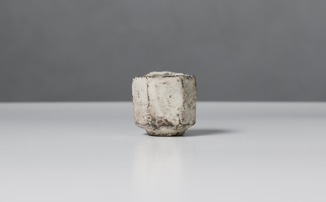 確かな技術によって土の持ち味を引き出し、力強い作品をつくり上げることで知られ川上清美さんが製作した焼締のぐい呑みです。