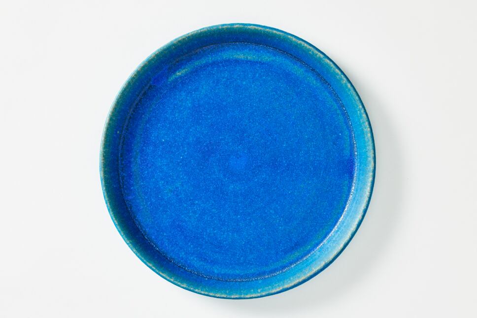 康雲窯の特徴のひとつでもある青藍は、藍染の鮮やかな色を焼物でも表現したいと工夫して生まれました。27cmと迫力のあるプレートです。